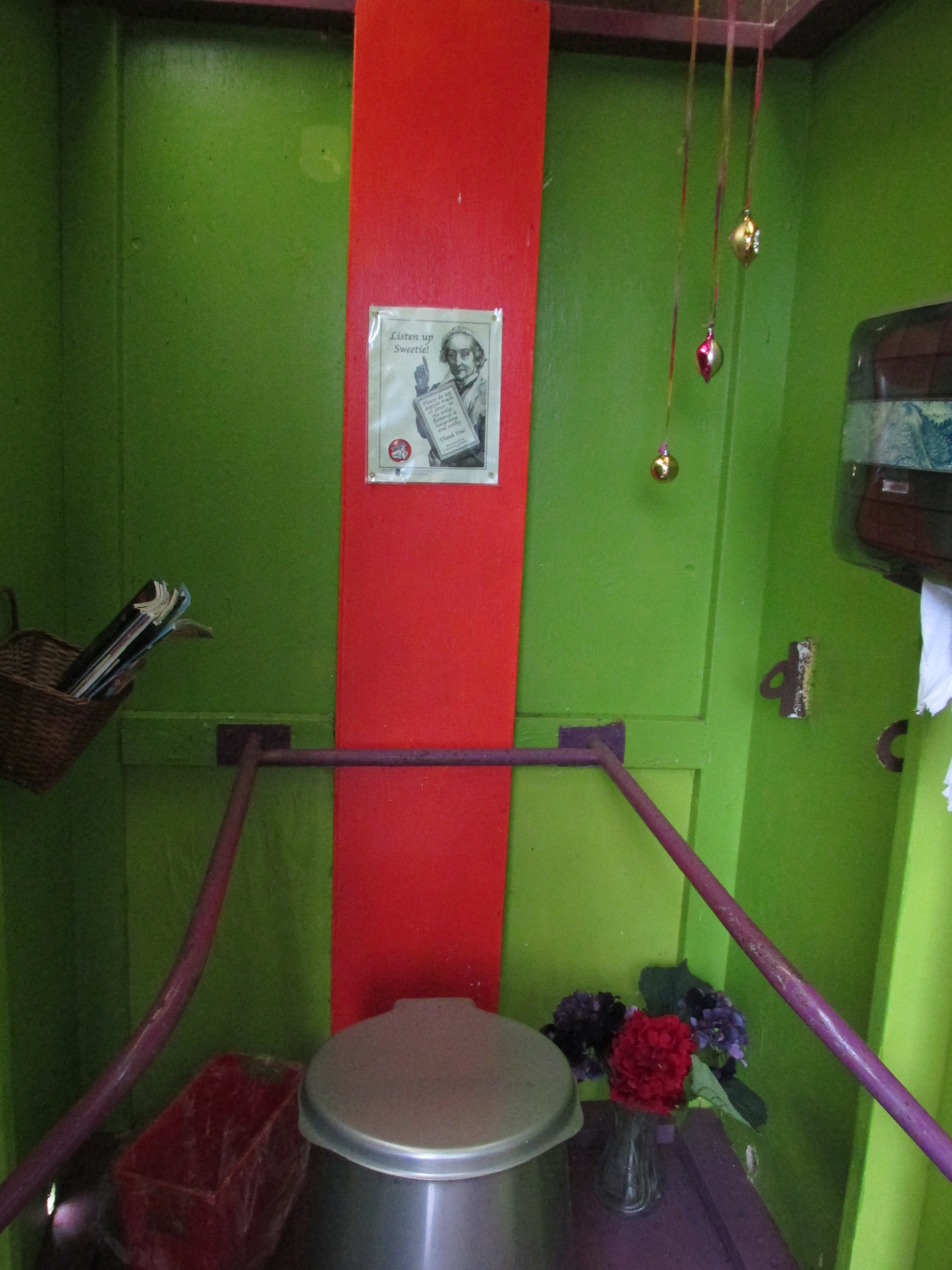 …and its latrine. Yup. You’ve heard of Adopt-a-Spot? This man has Adopted-a-Latrine. Here’s a look from the outside of the World’s Spunkiest Latrine: