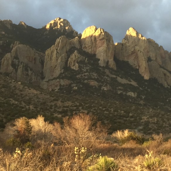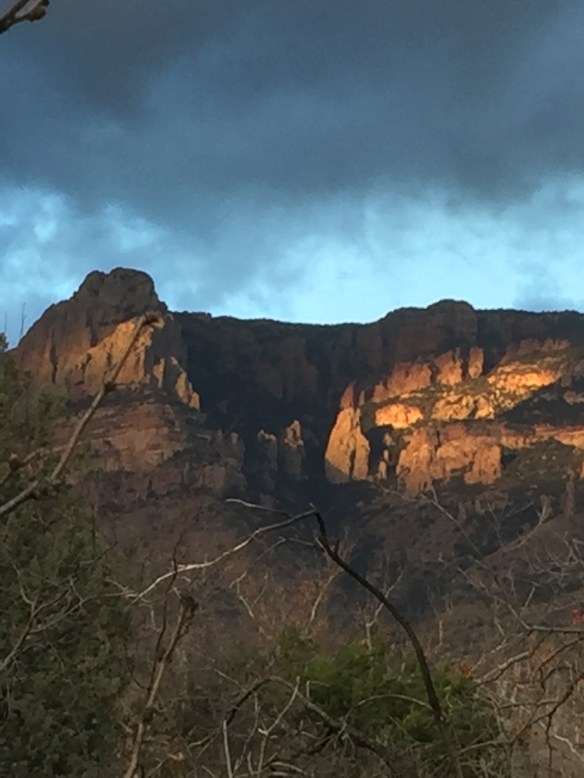 I’m writing this from a special place which has been, in fact, a historical hideout—for the Apache leader Cochise, and also for Gerónimo—and which is so little known as to count as a hidden treasure. The “town” is named Portal, but it’s the portal to the Chiricahuas, a region of such grandeur it belongs more in the class of the Grand Canyon than in the obscurity of this southeasternmost corner of Arizona. One side of the mountains is actually a national monument; we’ve camped there before but I never blogged about it and don’t have those pictures accessible. But no worries: the non-monument side, where we’re staying in a cabin (since it was starting to snow, no camping)…THIS side manages to be just as spectacular.