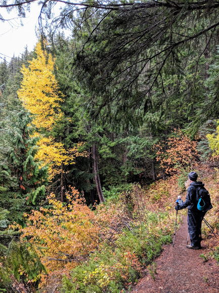 Foray #3: E.C. Manning Provincial Park. I was especially interested in this one, as I’ve had several friends through-hike the Pacific Crest Trail, and Manning is its northern terminus. We didn’t get to that part of the park (the weather was hovering right above freezing and we weren’t thrilled about tackling ice in our friends’ little rental car), but we did take a nice hike past some waterfalls, punctuated by fall color.