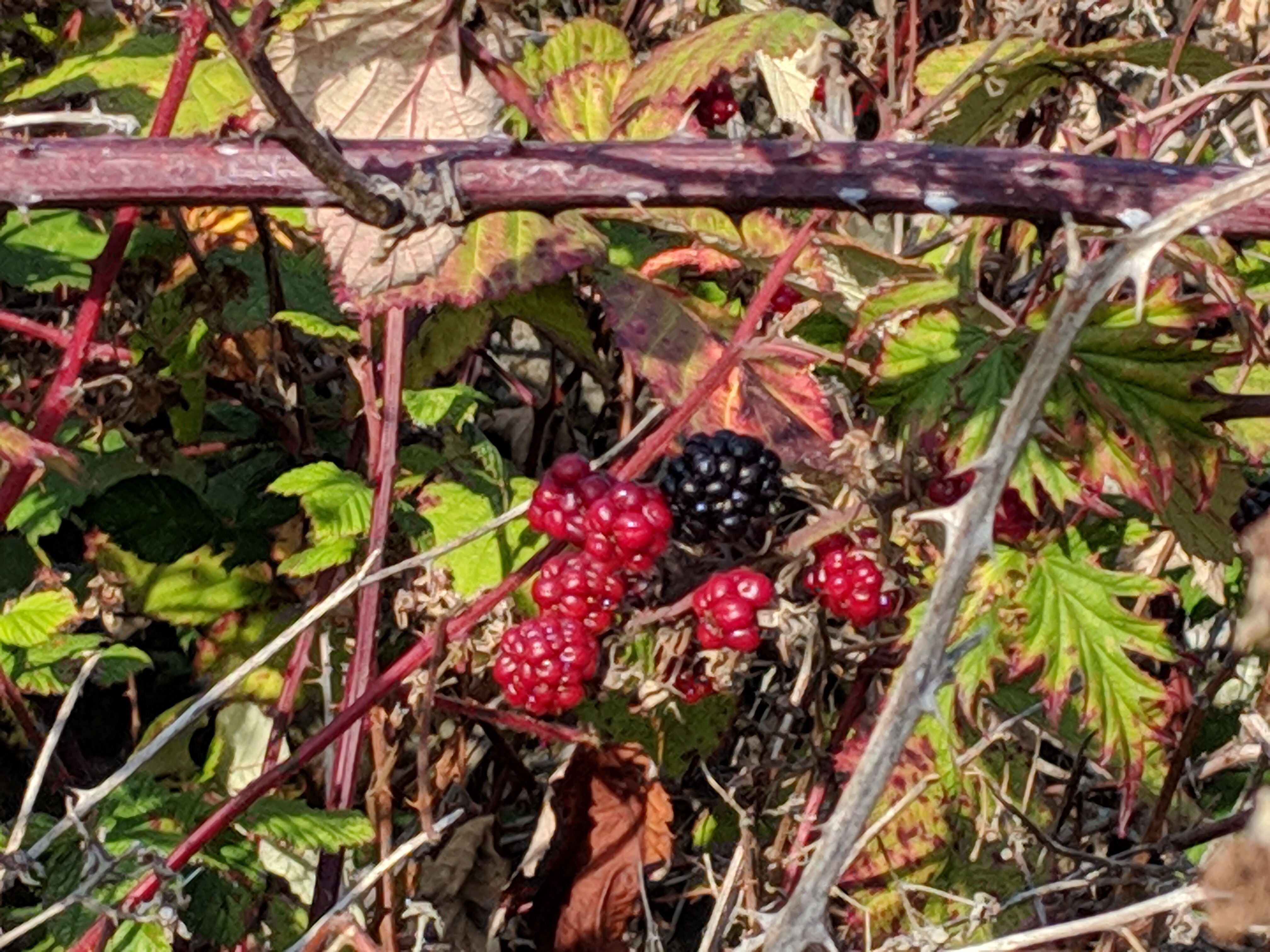 Even the lowly blackberry plays with its palette in November!