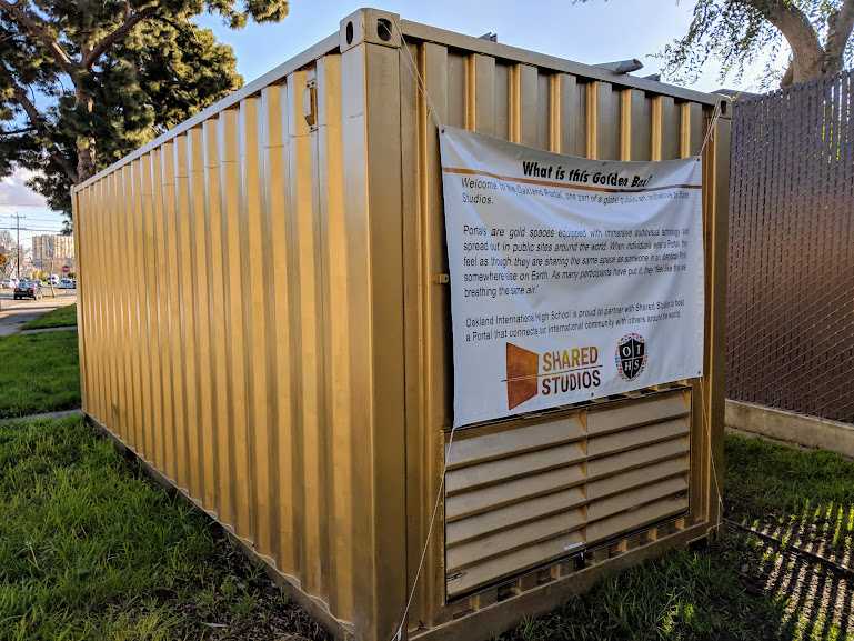 And out front, this enticing “golden box,” which, upon closer inspection, proved to be a tiny studio where they connect kids with people from all over the world to share stories.