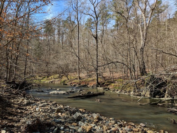 I’d show an even steeper hill, but I didn’t feel like wading across New Hope Creek