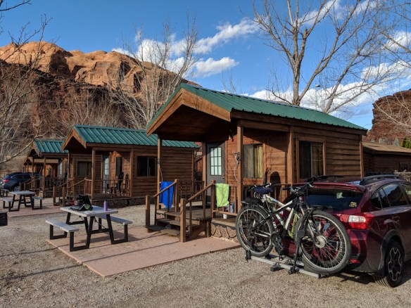 So…Irony. The very thing that draws us to Moab–the joyous celebration of its dirty, sweaty beauty–prevents us from engaging in that highest of ceremonies, spontaneous camping. Yeah, I suppose we could’ve acted like our younger selves and just pulled off the road somewhere to pitch our tent. But in the Church of the Great, Dirty, Sweaty Outdoors, I guess these days we’re those Establishment types who claim front pews. Next time, if I possibly can…I’m making reservations!