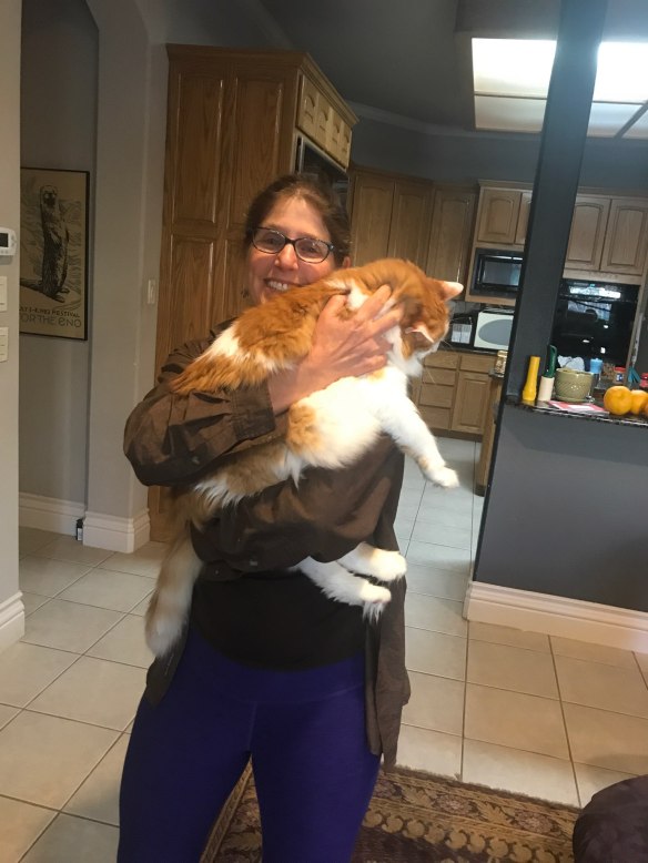 Also, thanks to my sister’s tree, we are now the Sisterhood of the Traveling Avocados, Oranges AND Grapefruit! (not pictured ’cause I’ve been eating them in the car–sweeet) But here’s another cat picture instead.