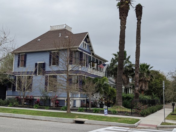 Biking around, I kept thinking about seeing Ciudad Juarez across the Rio Grande as we’d passed through El Paso a couple of days earlier. Yes, the Mexican streets and houses look poor, in some places desperately so. But they are so colorful! Pink and green and blue and purple–as if to say, “C’mon, America–why you gotta be so DULL?” Well, Galvestonians are NOT dull.