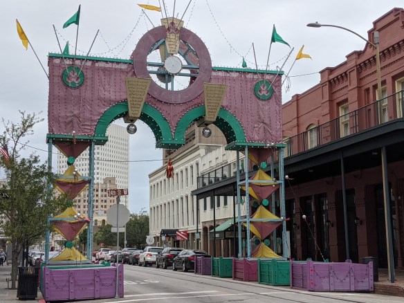 Mardi Gras was last week. I kept running over beads with my bike wheels, and lots of decorations were still up.