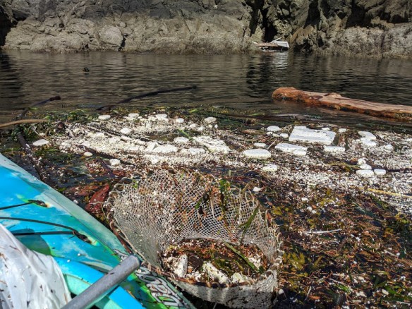 Those big chunks of marine garbage? They weren’t gone. They were just lodged in a cove, slowly breaking into more and more horrible bits for idiots like me to scoop.