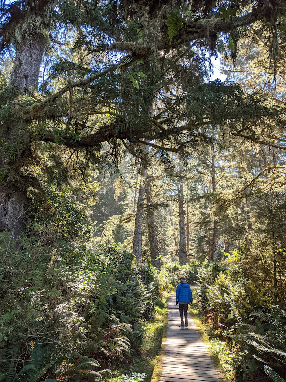 Leaving Tofino, we drove less than 20 miles down the road to Pacific Rim National Park, a thin strip of forest and beach that runs a good length down Vancouver Island’s Wild West Coast. The hiking trails are all short, but the longest of them is run by the Nuu-chah-nulth people, whose land it occupies.