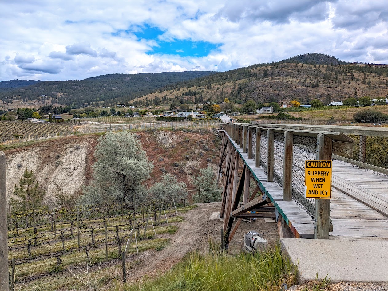 Crossing the border into Osoyoos, the gazillion not-yet-open fruit stands made us regret being there so early in the season. On the other hand, given the fires of recent summers, we felt just as happy to experience lush greenery and cooler temps around Penticton, a region we’d had to skip last fall due to…see the opening words of this sentence.
