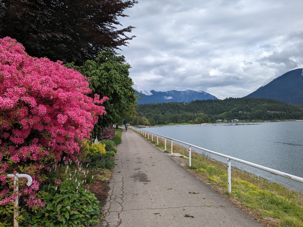 One ridge over from Okanagan, though, is a lake we fell in love with last fall: Kalamalka. Also ringed by a bike path…but right along the shore, zero roads involved.