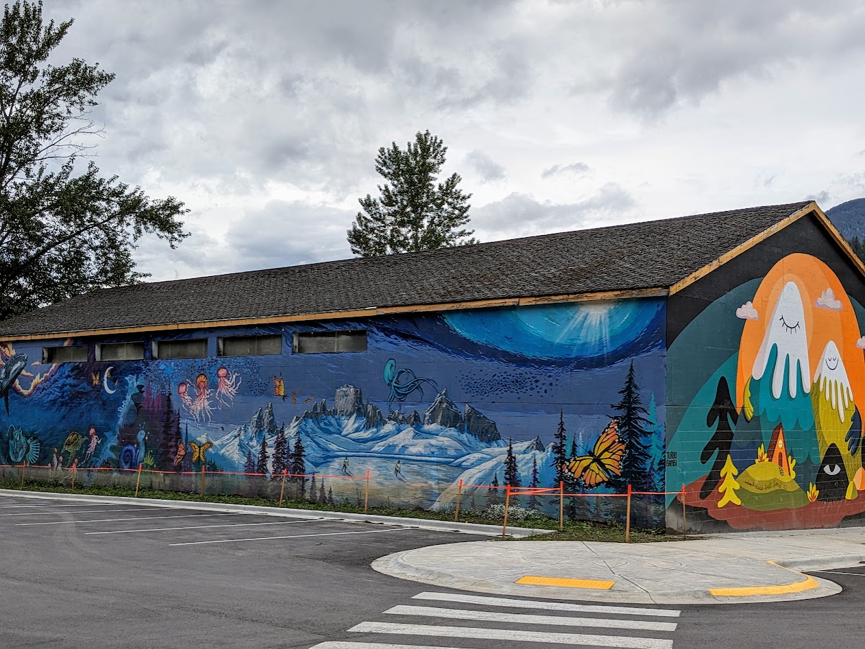 After several nights of campering, we decided to give Vanna Grey a day off while we stayed in a hotel in the town of Nelson, BC. Nelson is apparently famous for murals. GOOD ones.