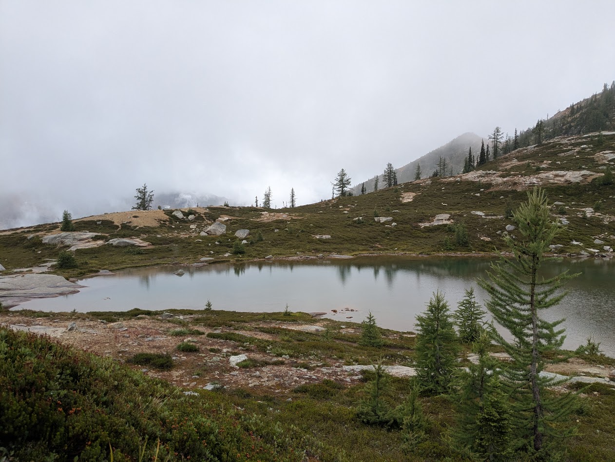 It was a warm drizzle, not bad at all–but we did have hopes that the sun might reward us for our intrepidness and burst out at our Day 2 destination, a pair of high lakes.