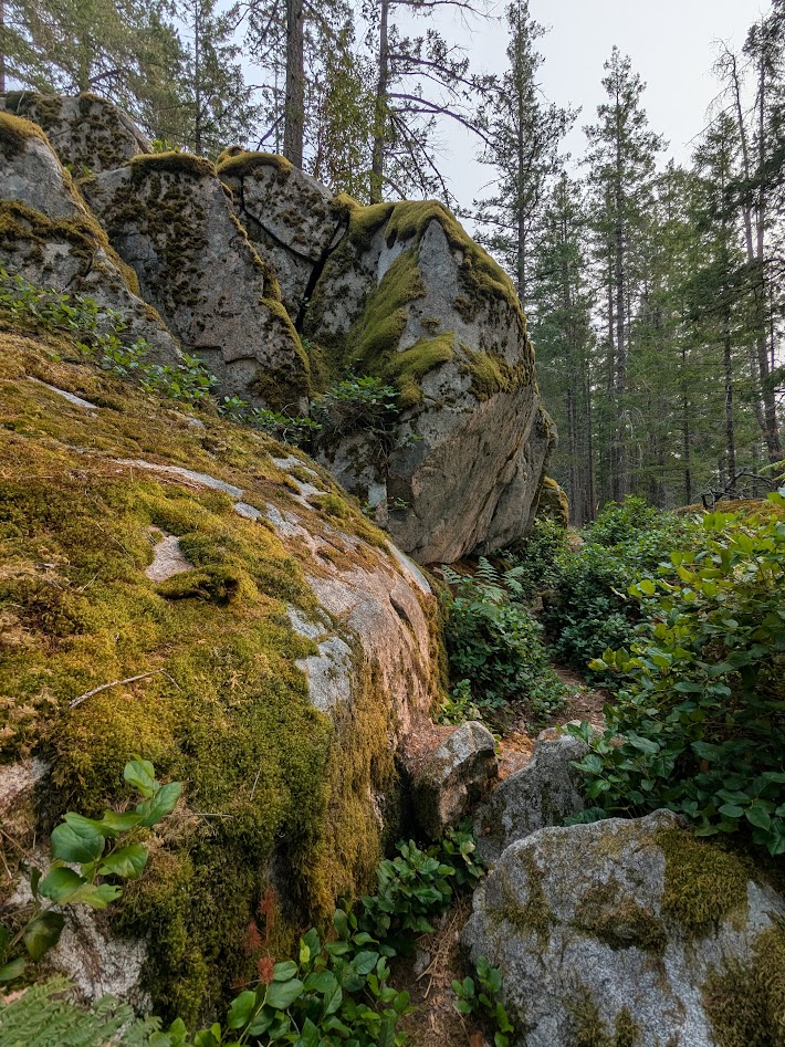 One morning I got up, pre-cousins, and took myself for a stroll along the creek. Something grey caught my eye–a baby dome I hadn’t even noticed–appropriately named (I learned later) Puppy Dome.
