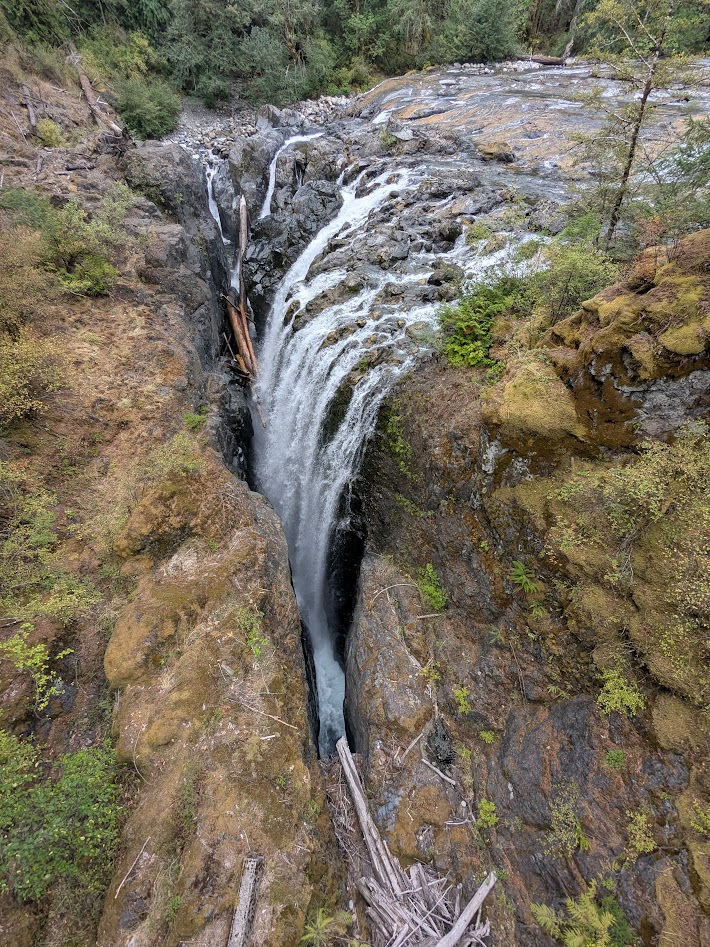 This is Englishman Falls Provincial Park, just a hop & skip off the main highway between Campbell River and Nanaimo. And yes, that disappearing waterfall is even more insane in real life. Here’s what it looks like face-on: