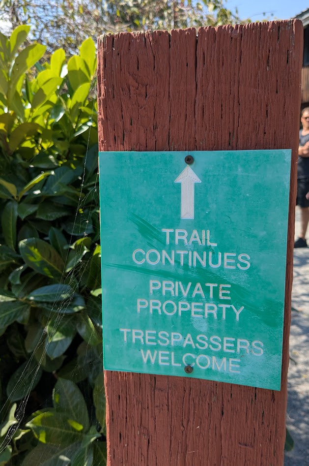 A wry note: on a nearby trashcan I found these words spray-painted: “Land Back!”