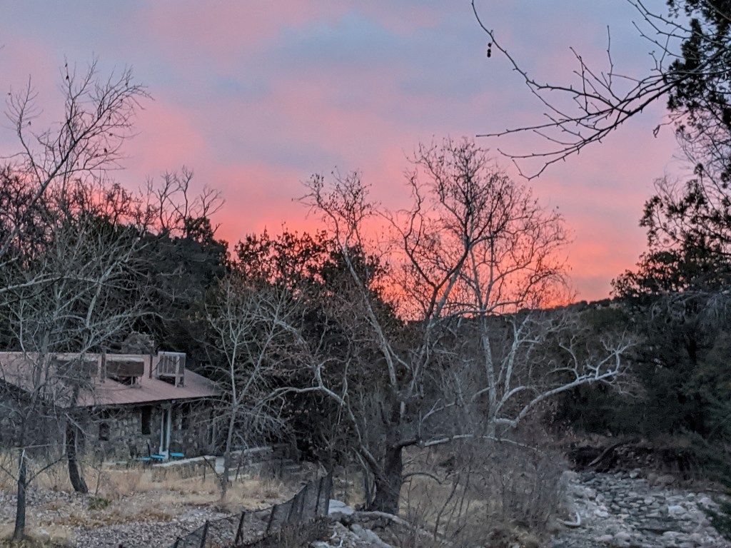 We had two precious days in a cabin with good friends, enough to learn the commuting habits of the local wildlife, like the turkeys who strutted past one way in the morning, and back the other at evening time. Going out at dawn, after a glorious sunrise…
