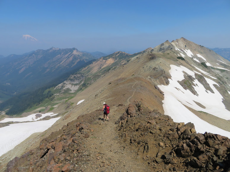 I can’t promise how long Nature’s “cordial of incredible virtue” will last. But while it does…please, allow me to share some of her bounty, in the form of Goat Rocks Wilderness in southern Washington. All photos are by my Ironwoman goddaughter and adventure buddy, Allison. (Apologies for the haze–parts of the Cascades are on fire.)