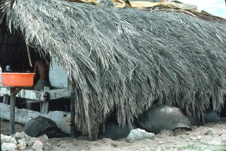 The workers’ contracts specify a fixed food ration and wages, but no family supplements.  A man with his family here must buy additional food and pay rent, with no hope of ever being able to save any money, as the prices are high, fishing is restricted, hunting forbidden, and wages low. In the Royals’ defense, it should be added that conditions for workers in Mahe are no better. Jobs everywhere in the Seychelles are scarce. On Aldabra, however, the contrast between the workers’ plight and the conditions of the Europeans is particular stark. The logic of our killing animals for study while forbidding them to be killed for food escapes the Seychellois  (me, too, for that matter). [Tell it, Mom. Or Dad.] We suspect the Royals’ presence here will not be long term. Aside from the impending labor unrest, the Seychelle government seems eager to develop Aldabra as a tourist destination, along with the Amirantes to the northeast, as part of an Indian Ocean island tour package.  Aldabra may then sink from the weight of tourists on its shores, after having been saved from the RAF’s bombing practice after WWII. [Note to self: look this up. How IS Aldabra these days? Sunk?]
