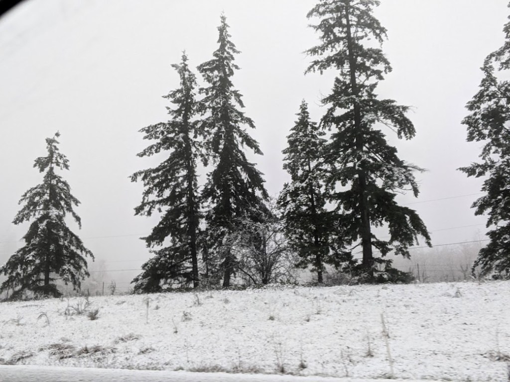We didn’t plan it that way, honest—but we picked a good time to hightail it south. Heading out from the Anacortes ferry terminal, we were surprised by snow.