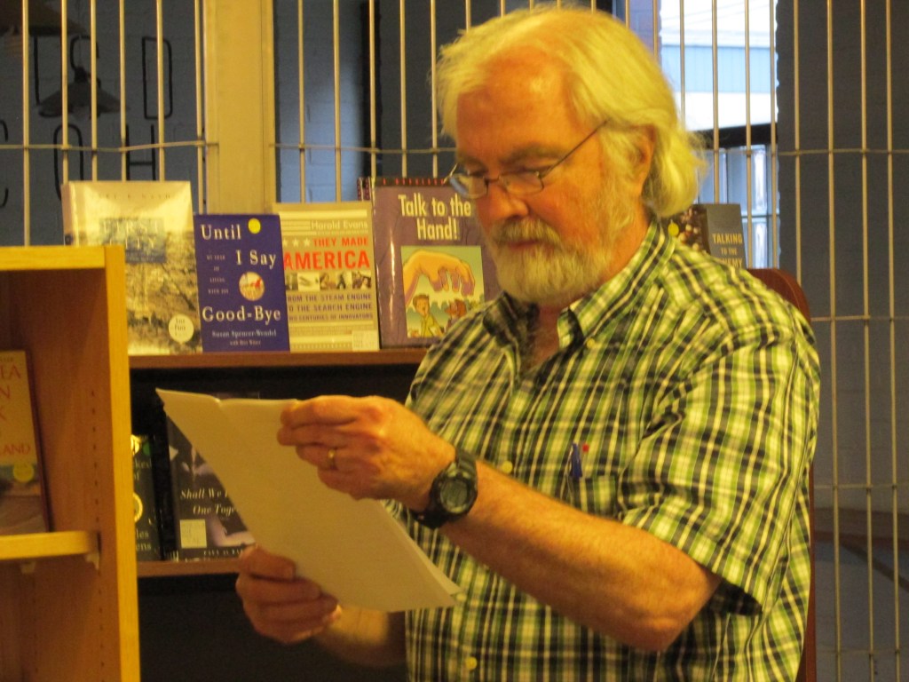 Since I had published Book Two of my YA Flying Burgowski trilogy, Headwinds, at the end of 2014, this road trip featured another reading at Durham’s famous Regulator Bookshop. This time I enlisted my old middle school English teacher, Henry Walker, and a couple of current Friends School students, to do a dramatic reading with me!