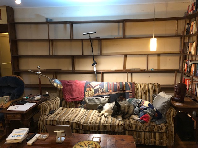 The return trip took even longer, both because we finally spotted goats and because we more often forsook the goats for a slower plod on soft sand: the prevailing winds bend the sharp spikes of glass towards the west, so the return trip had us impaling our legs and shins, a good reason to opt for the slower route. It was getting cooler rather than hotter by then and as we grew more fatigued, the southwest breeze brought us some rain from a nearby storm, even while the sun warmed our bare backsides: we are now tan enough to dispense with clothing almost all day; evenings millions of man-eating mosquitoes compel us to dress. [I can attest to this: when Mom and Dad returned home, they were a nice, even brown–no tan lines anywhere! Very Adam & Eve-y, before the whole figleaf thing.]