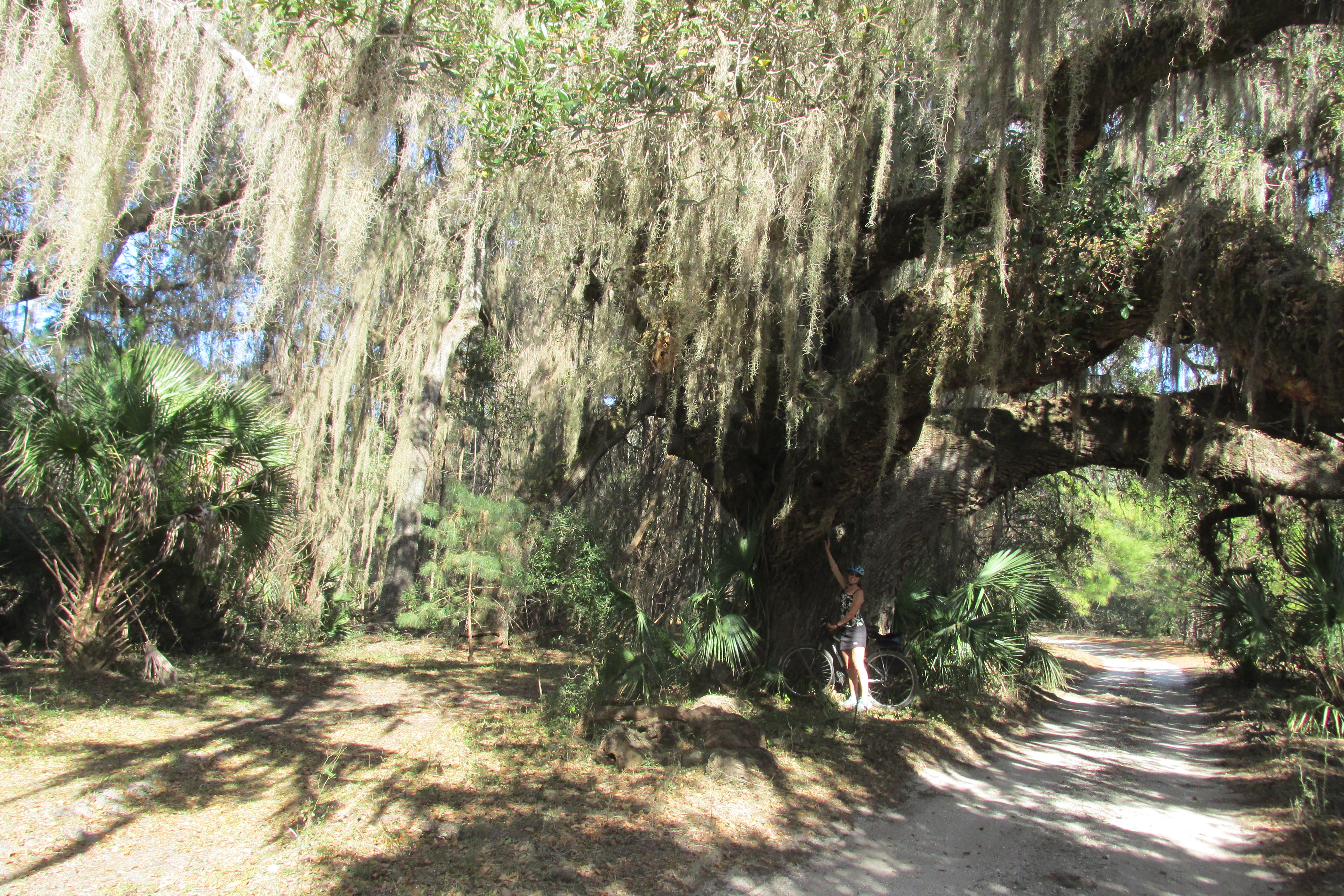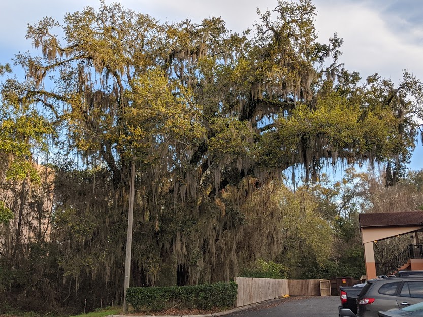 And even with such meager expectations, Tallahassee offered us a good reminder of northern Florida’s lovely topography (NOT flat!) and relatively undeveloped landscape (hardly any billboards, even on I-10). And a wonderful bakery, and a gorgeous sunset (not pictured) and this giant live oak in the motel parking lot.