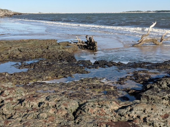 Along the way we took a sideline to the beach, to visit with some crumbly-clay tidepools…