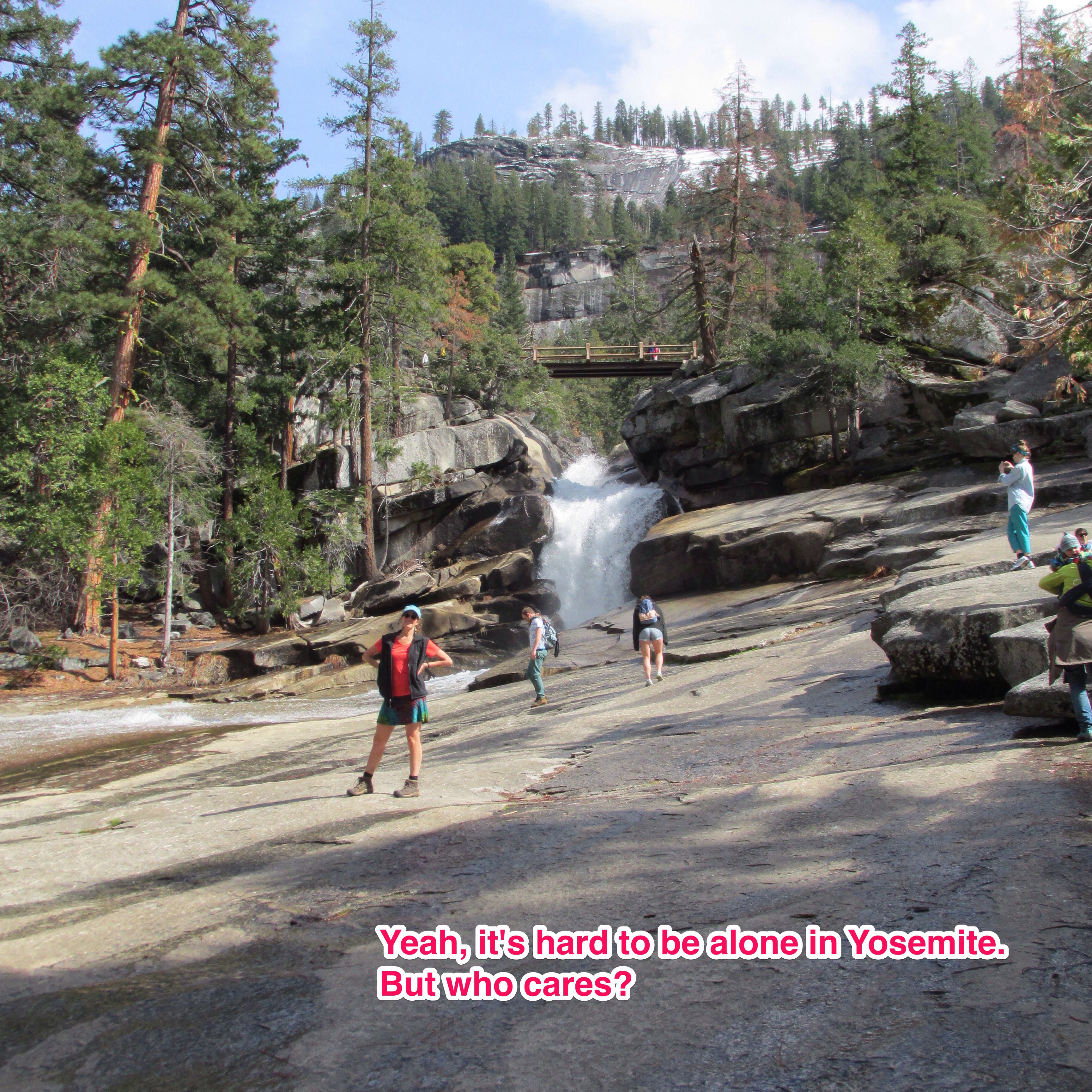 Crowded? Yes, they are–and will be more so if everyone takes my advice. I don’t care. When you are standing at the base of Yosemite Falls, looking up to where the water begins its barely-conceivable 1,500-foot drop, thinking of the glacier that cleaved and carved and polished that endless granite wall…you are, in that moment, entirely alone.