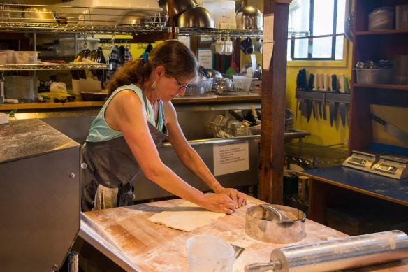 Holly B’s Bakery has been trading in Love & Butter since 1976, and I’d been working as a baker there since 2011. But in 2016 Holly retired, selling the bakery to my brand-new boss, Stephanie. After receiving her promise that I could make pie (something Holly wasn’t into), I agreed to be there to help out on Opening Day–March 17. Which meant flying home from NC.