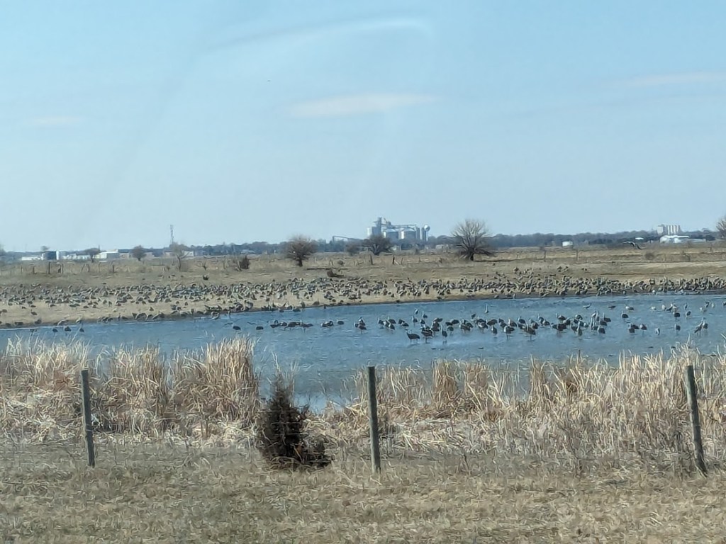 But the biggest miracle of the day came later, approaching the center of the state (along I-80): we met the migrating Sandhill Cranes.