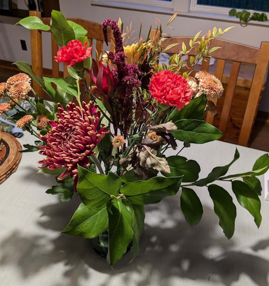 Pretty, right? There’s even a rose, which I manage not to show in this snapshot. But nothing out of the ordinary. Just lovely flowers from a lovely young man who happens to be my son.