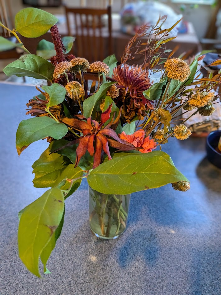 I seriously think I might have repurposed that bouquet one last time, in a smaller vase. But we’re coming up on Thanksgiving; counter space will soon be at a premium…and let’s face it: ONE MONTH is more than twice the joy I’d expect to receive from any bunch of flowers not planted in dirt. Why be greedy?