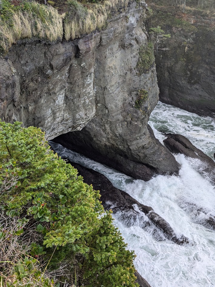Moving up the Olympic coastline from Quinault, one has an embarrassing pick of beaches. Beach Three’s our favorite, for its tidepools, but the tide was too high this time of year. So we got to focus on other wonders–like this natural water feature.
