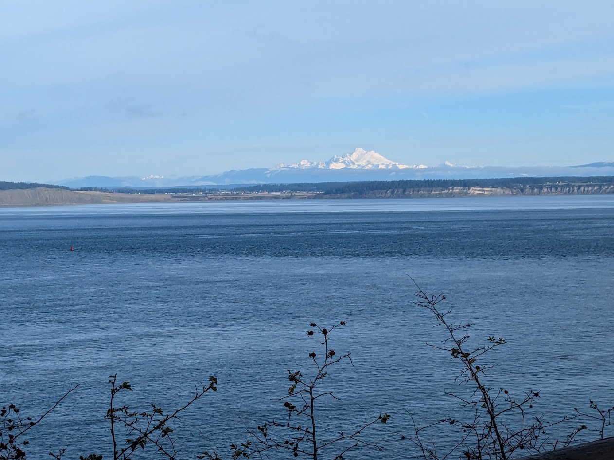 …and a Mt. Baker mid-morning, looking north from Ft. Worden State Park.