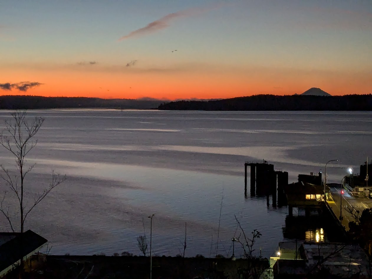 Our weather stayed amazingly clear, gifting us both a Mt. Rainier-silhoutted sunrise…
