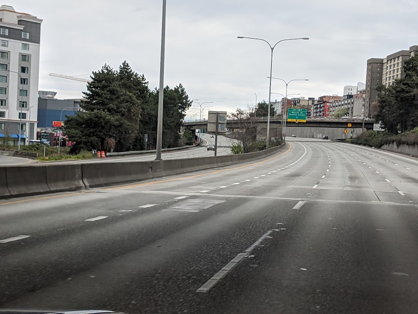 THIS is relevant: Seattleites being altruistic by staying home, off the freeway. (OK, yeah, also being a little scared.)