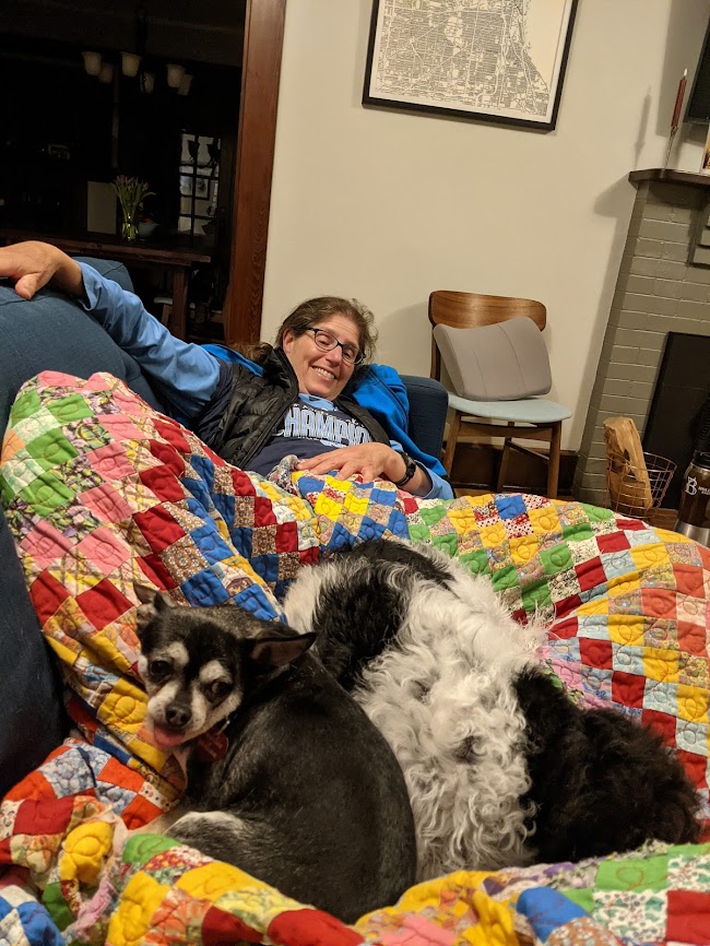 …but after our tour, we were happy to cuddle up with our friends’ dogs.
