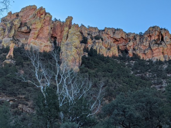 This year we opted for the east side, which means driving into New Mexico, then heading south and west and ending up back in Arizona–just barely–in the miniature town of Portal. No National Monument here…”just” national forest, and wilderness.