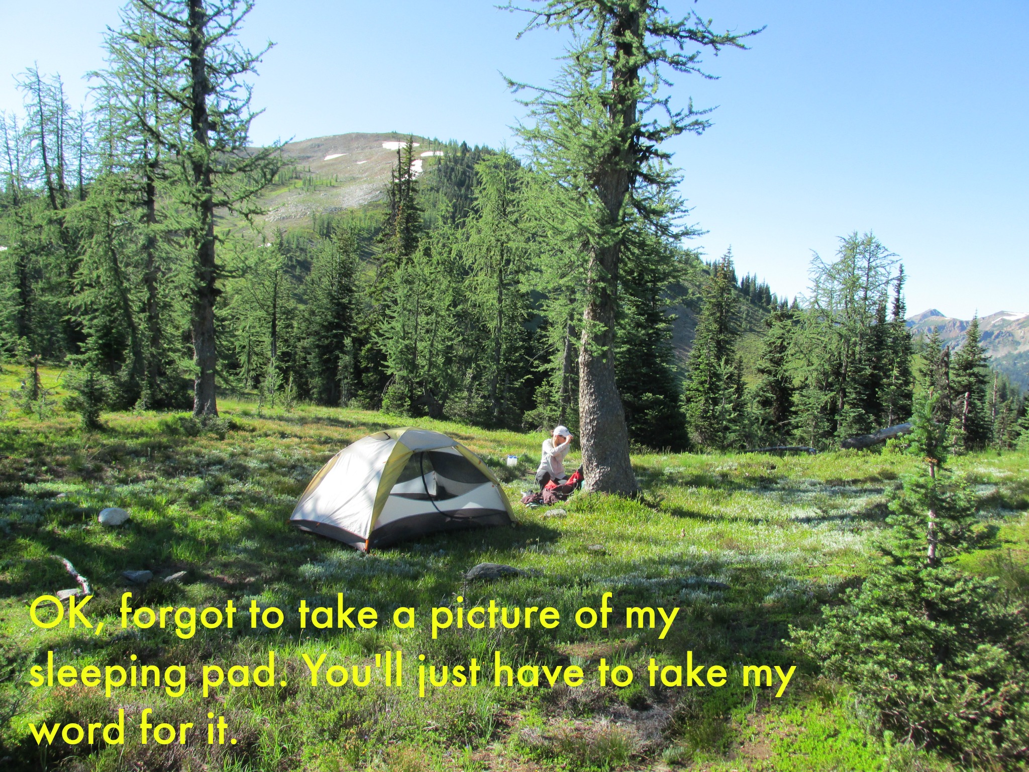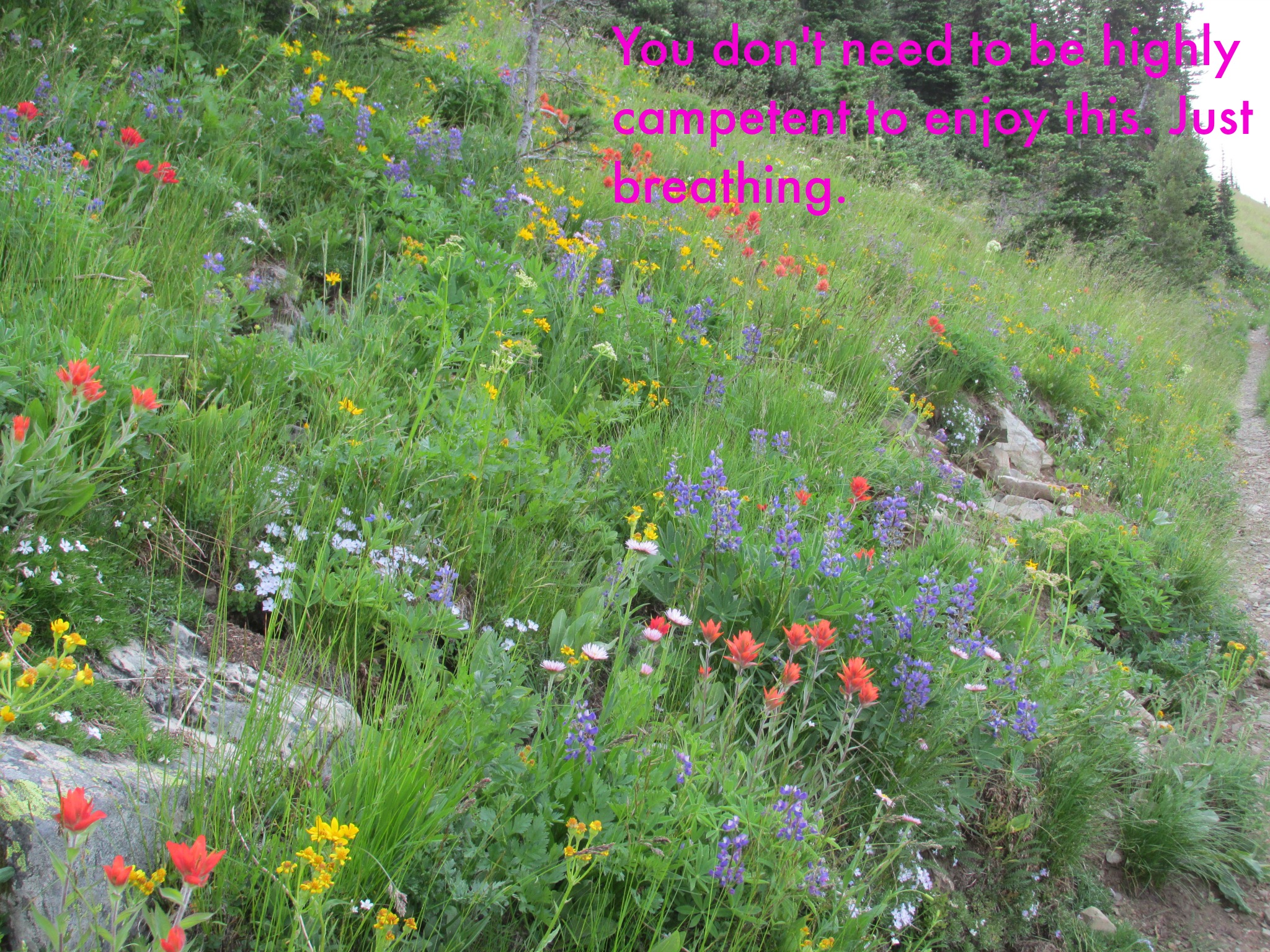 Well, I’m obviously out in a mountainside meadow. Wilderness, or at least the illusion of wilderness, is important to me. Is that a White thing? And I have gear: knee braces, a water pump. Good boots. REI Nation! I know they’re trying to reach out, but still–REI’s a pretty White store, am I right?