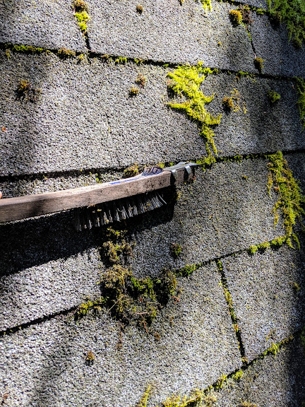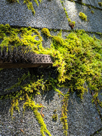 Of course we didn’t use any chemicals to remove the moss. Our only tools were a sort of vicious, giant metal ogre-toothbrush, and our own muscles.