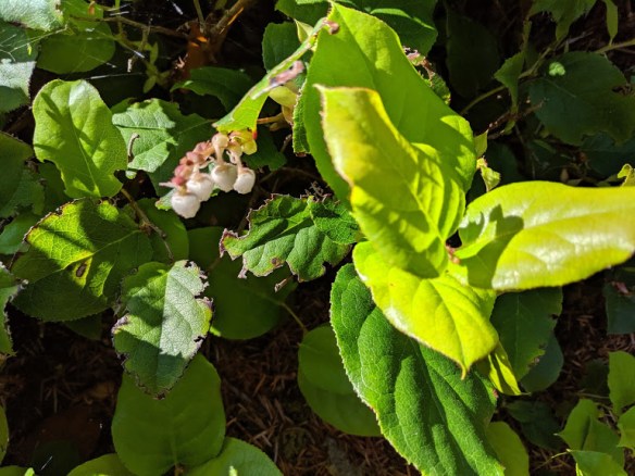 For that matter, why should the flowers have all the attention? Aren’t the new leaves of this Salal just as eye-catching as its blooms?