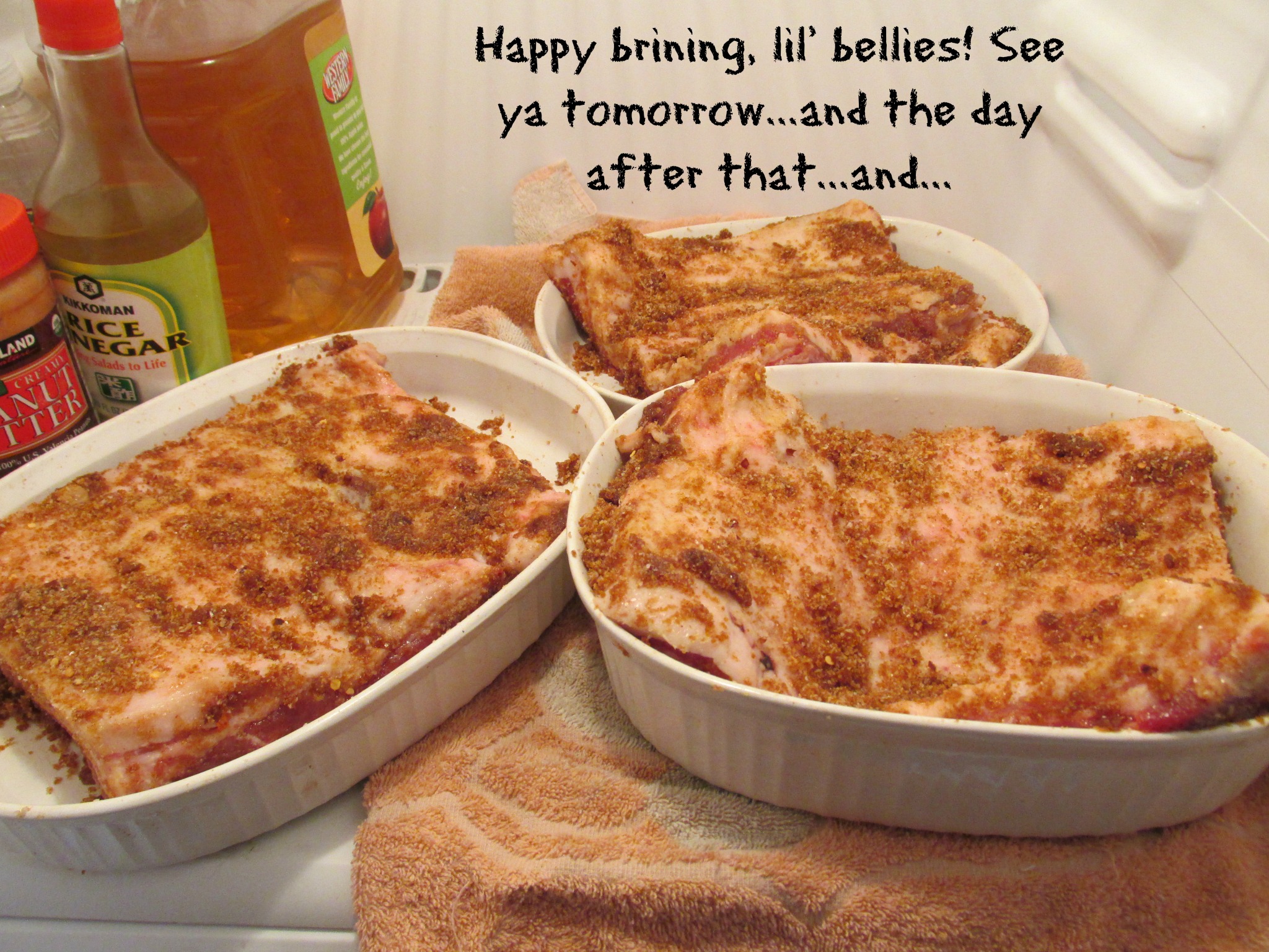 Why isn’t everyone doing this? I THINK it’s ’cause pork bellies aren’t generally carried by most stores–you have to order ’em. And then the process does use kind of a lot of fridge space. But it’s only for 10 days! And you could always use a cooler.