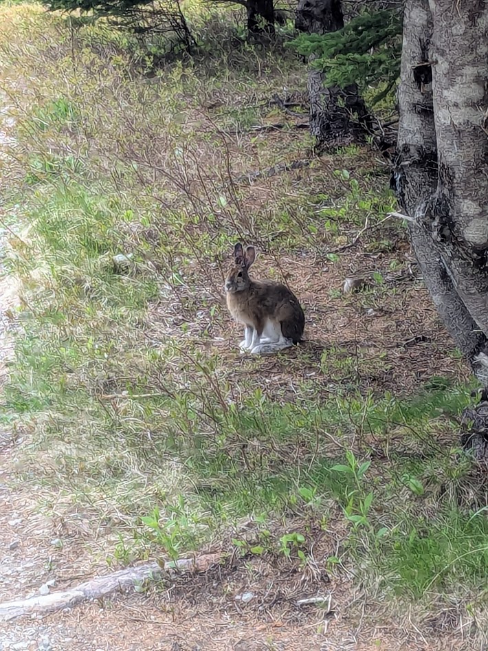We also encountered a couple of bunnies, which, we realized by their coloring, were actually Arctic Hares still transitioning from their winter whites.