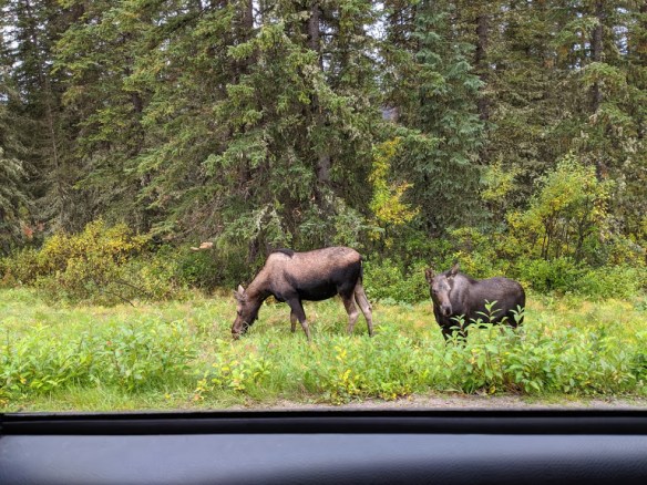 Our first morning, we drove Up Valley to Tweedsmuir PP, and were promptly rewarded by seeing a pretty black fox (not pictured; I was driving), followed by a mama bear with 2 cubs.